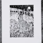 This beautiful linocut has been created in our art studio. Every print pull is slightly different and will produce different textures, which is what I adore about relief printmaking.