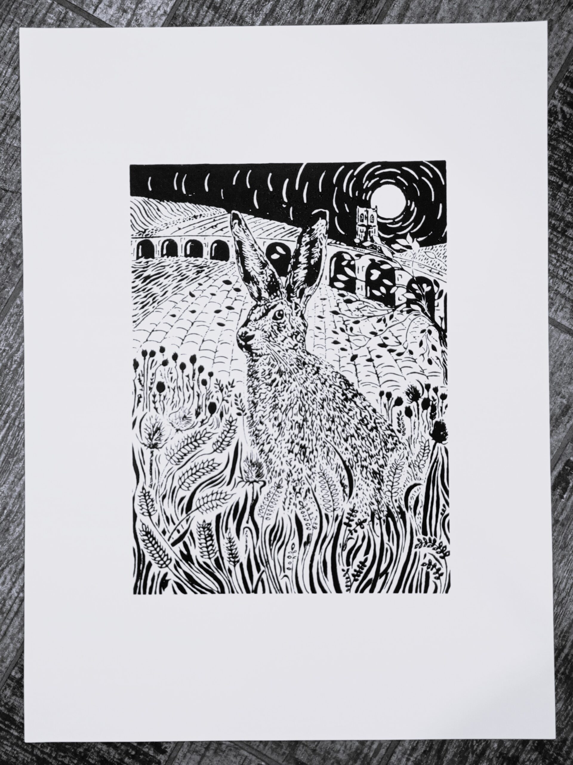 Product Details This is an original handmade linocut print.  Autumn Hare Above Penistone is one of a triptych which I started in 2023. The piece depicts a Hare amongst poppy heads and the last of the corn in Penistone South Yorkshire.
